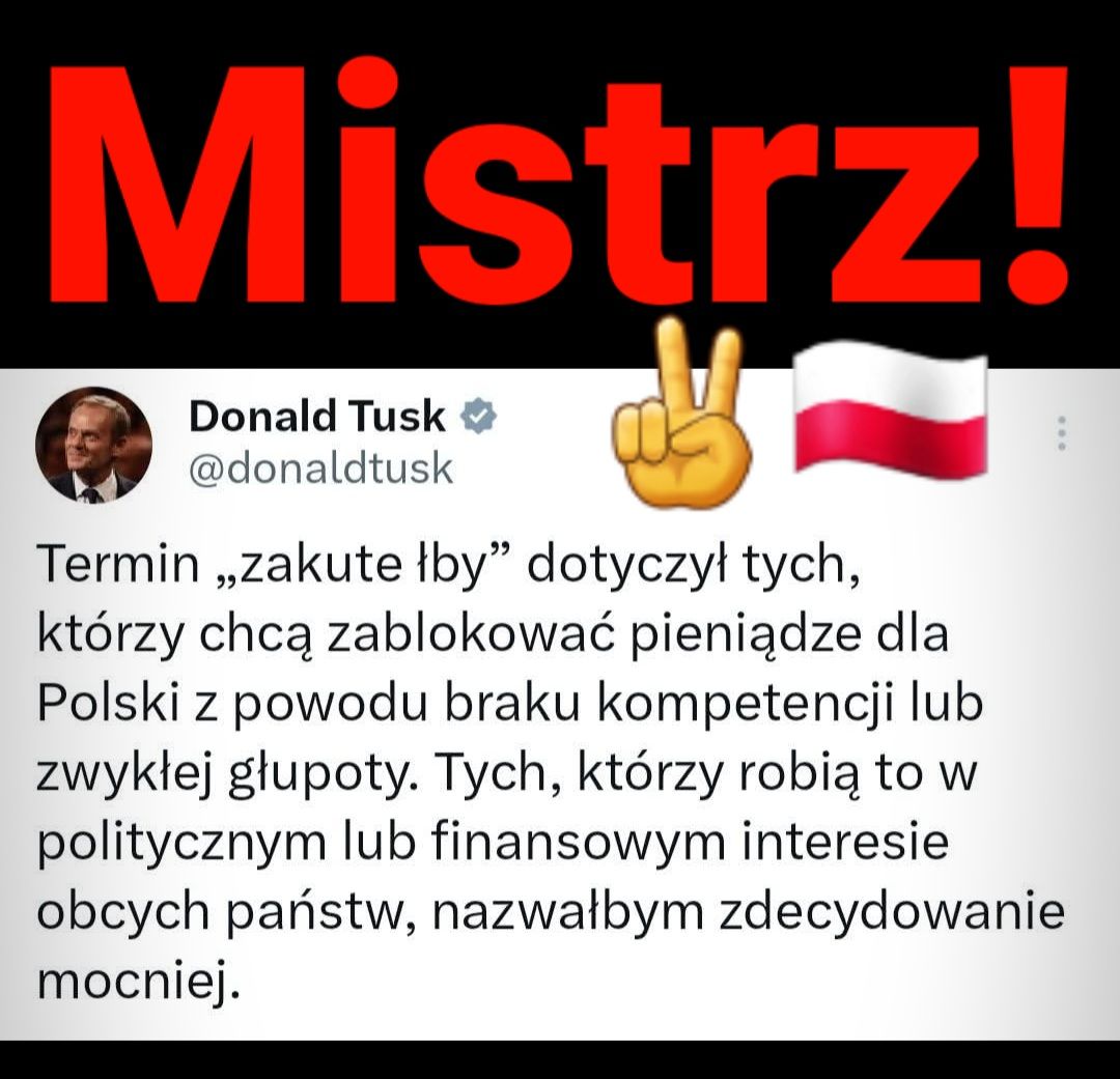 Donald Tusk wyjaśnił, że słowa te odnoszą się do tych, którzy blokują pieniądze dla Polski z powodu braku kompetencji lub w interesie obcych państw.
